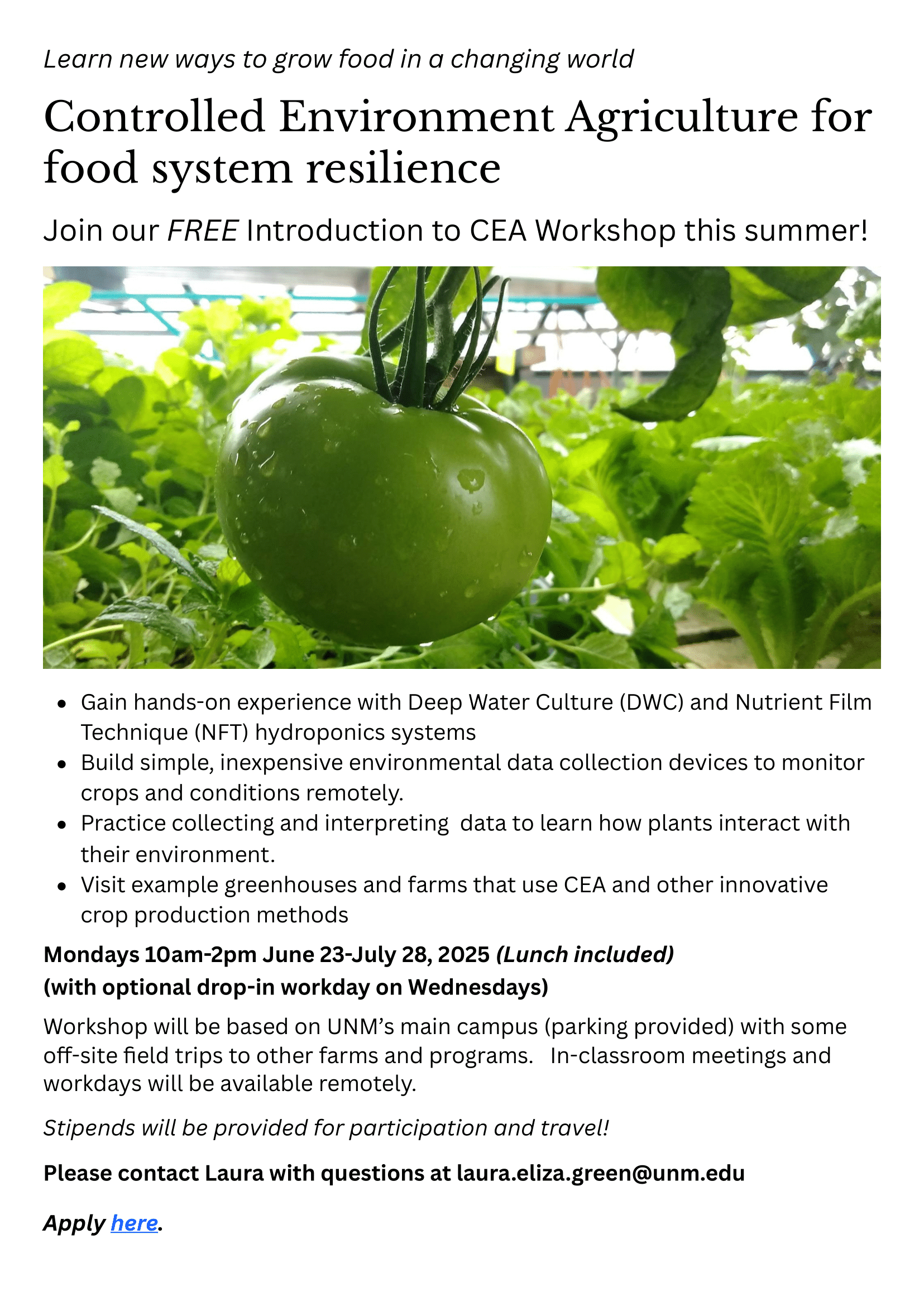 Category: General Controlled Environment Agriculture for food system resilience